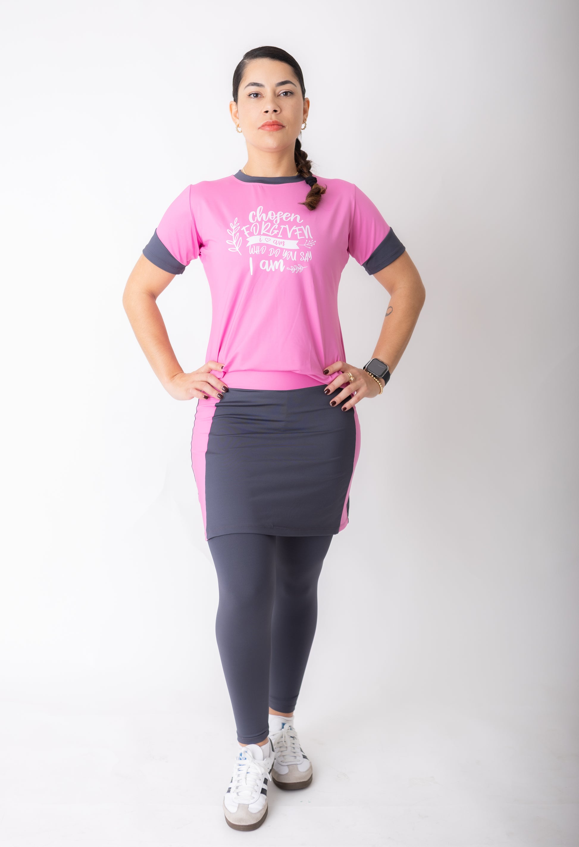 Blusa Baby look feminina Fitness Rosa e Cinza